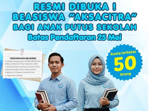 Makassar, 19/04/2026 — Yayasan Pusat Kegiatan Belajar Masyarakat (PKBM) Merah Putih resmi meluncurkan program “Beasiswa Aksacitra”, sebuah inisiatif pendidikan yang ditujukan bagi anak usia maksimal 17 tahun yang ingin melanjutkan..